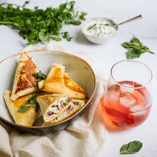 Coupez le wrap en deux. Ajoutez un peu de sauce pita.